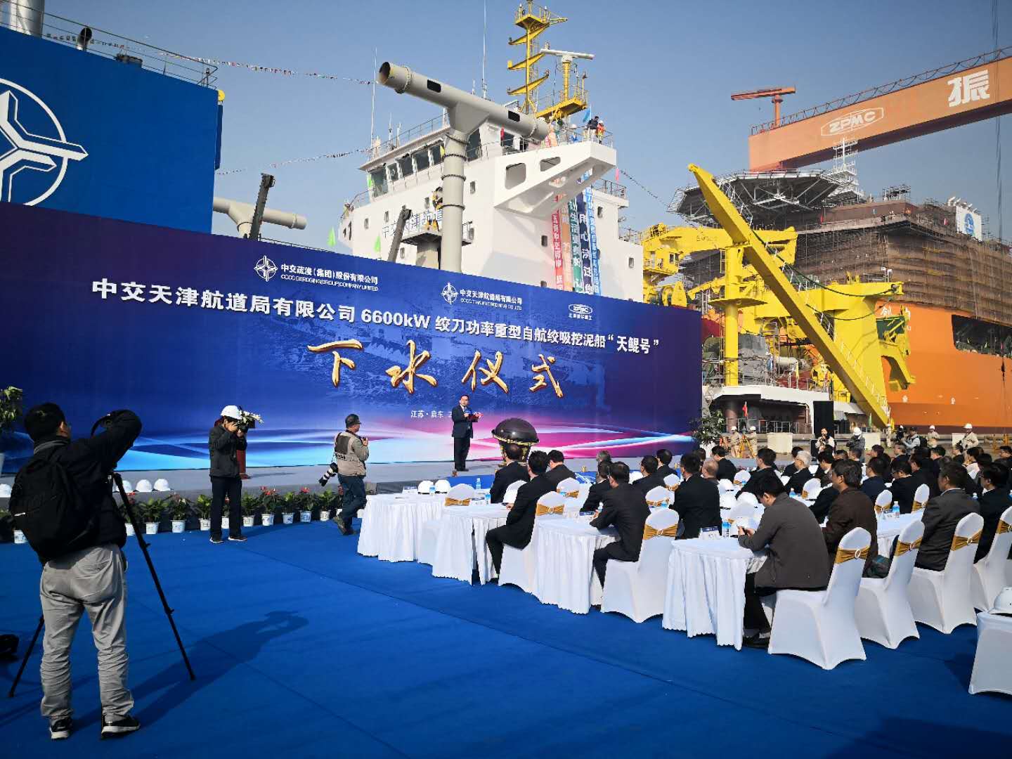 祝賀南通豪通船務(wù)(啟東事業(yè)部)在上海振華重工(啟東)參與建造的天航局6600kw絞吸式挖泥船(天鯤號(hào))于2017年11月3日成功下水!